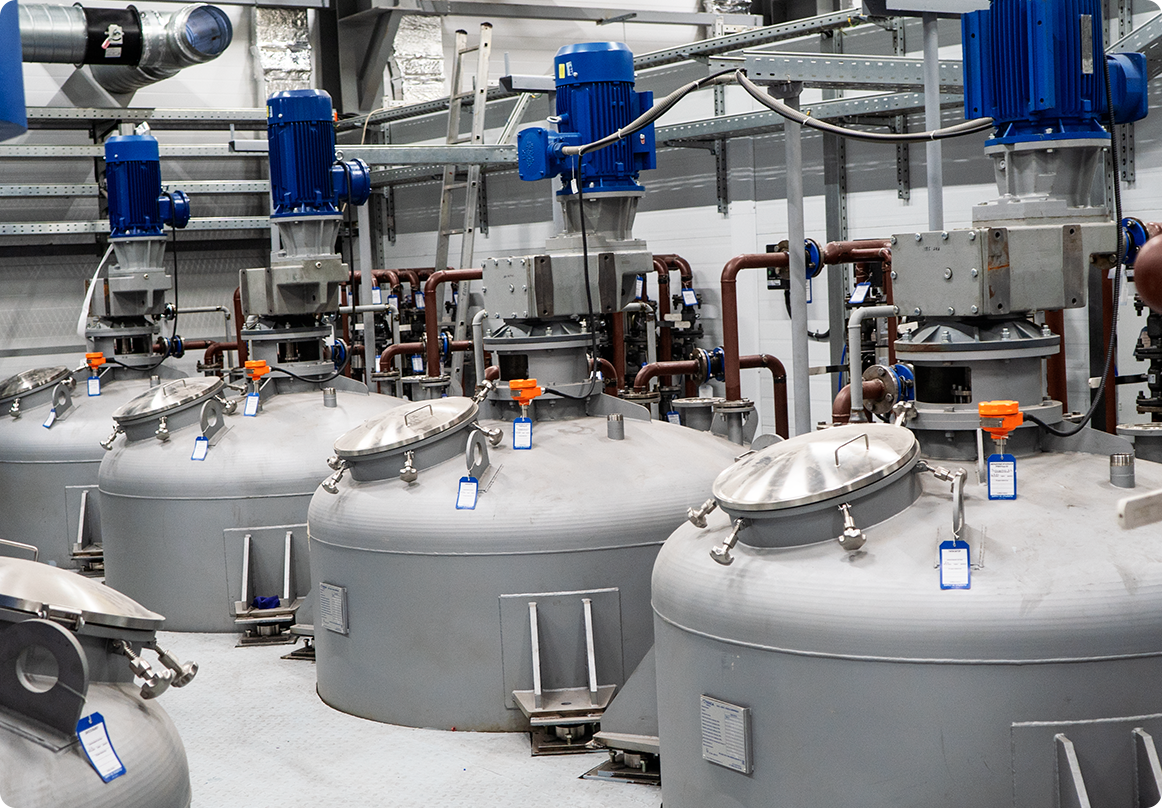 крупнотоннажными диссольверами;