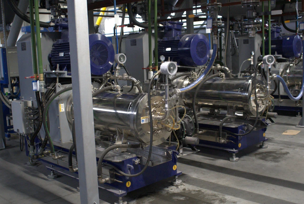 импортными горизонтальными и погружными бисерными мельницами;