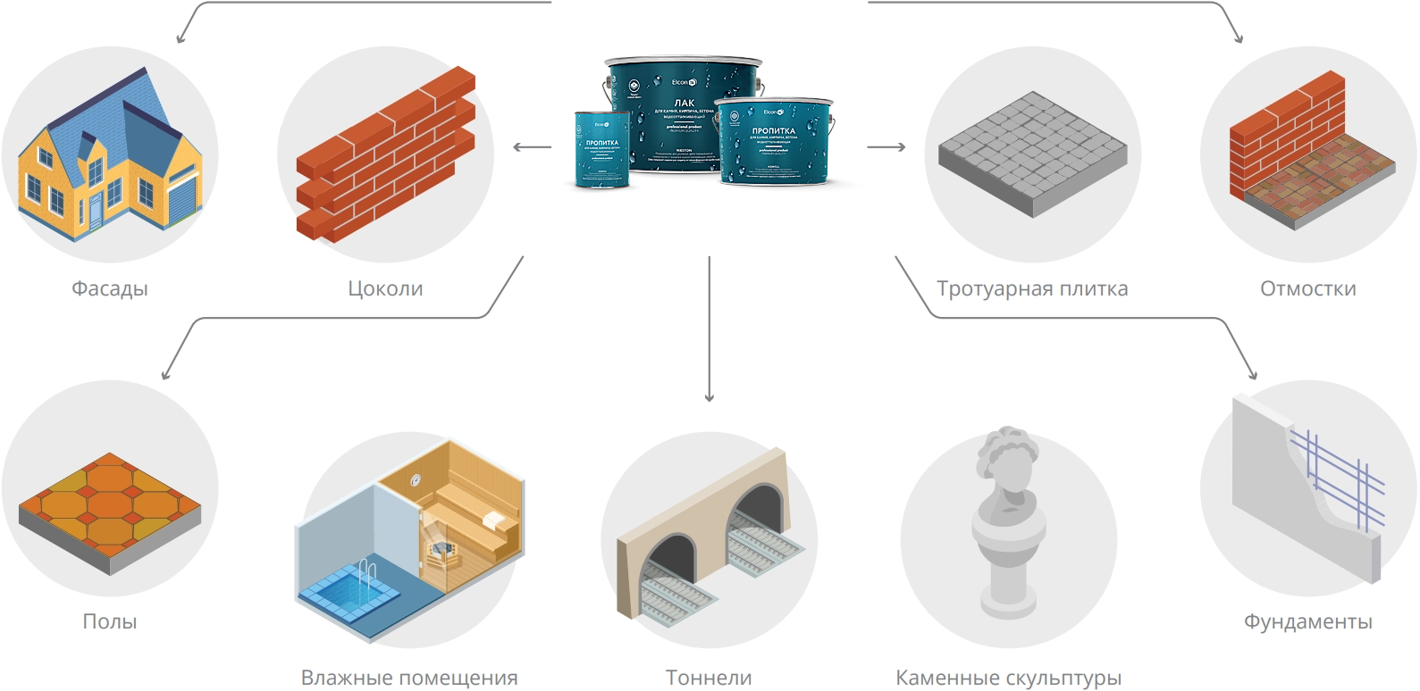 Водоотталкивающие пропитки для камня, кирпича, бетона Elcon